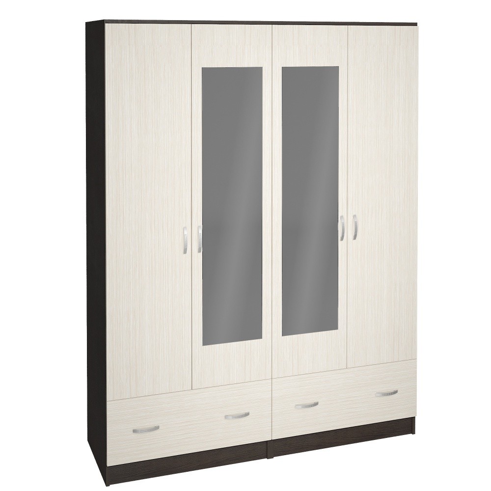 Шкаф Рига 4-х Створчатый с Зеркалом ШК-4 Разные Цвета/Ш-1600 х В-2120 х Г-520 мм